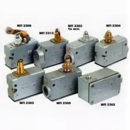 Структура условного обозначения МП1ХХХЛХХХХ.ХХХХ:МП- микровыключатель;1-номер серии;Х-степень защиты по ГОСТ 1425569: 1 - IР00; 2 - IР40; 3 - IР54;ХХ- вид привода;Л-индекс модернизации;ХХХХ- климатическое исполнение (У, Т, УХЛ) и категория размещения (2, 3) по ГОСТ 1554370;ХХ- способ крепления микровыключателя на панели и присоединения монтажных проводов (01; 03; 05; 07; 09; 11 -винтами; 02; 04; 06; 08; 10; 12 - пайкой);Х-число полюсов: 12 полюса (1 замыкающий и 1 размыкающий контакты); 21 полюс (замыкающий контакт); 31 полюс (размыкающий контакт);Х-группа коммутационной износостойкости: А - группа 1; Б -группа 2.ТипоисполнениеВид приводаСпособ крепления на поверхностиИсполнение по способу кре- пления на поверхности и мон- тажа проводов1234МП 1101ЛУХЛ3ТолкательБазовый, фронтальный винтами01; 02; 03; 04МП 1102ЛУХЛ3Толкатель с увеличенным до- полнительным ходомМП 1104ЛУХЛ3 Фронтальный гайками 0,1; 0,2МП 1105ЛУХЛ3Толкатель с продольным рас- положением роликаМП 1107ЛУХЛ3Рычаг с роликом Базовый 0,1; 02МП 1109ЛУХЛ3Селективный инверсныйМП 1110ЛУХЛ3Плоская пружинаМП 1202ЛУХЛ3Толкатель с увеличенным до- полнительным ходомКомбинированный, торцевой01; 02; 03; 04МП 1203ЛУХЛ3Толкатель с продольным рас- положением роликаКомбинированный01; 02МП 1204ЛУХЛ3Толкатель с увеличенным до- полнительным ходом Фронтальный гайками 01; 02МП 1205ЛУХЛ3Толкатель с продольным рас- положением роликаМП 1206ЛУХЛ3Рычаг с роликом05; 06МП 1208ЛУХЛ3Селективный прямойКомбинированный, торцевой 01; 02; 03; 04МП 1302ЛУ2Толкатель с увеличенным до- полнительным ходом МП 1303ЛУ2Толкатель с продольным рас- положением ролика Комбинированный01; 02Толкатель с поперечным рас- положением ролика03; 04Толкатель с шариком05; 06Толкатель с продольным рас- положением ролика07; 08Толкатель с поперечным рас- положением ролика Торцевой9; 10Толкатель с шариком11; 12МП 1304ЛУ2Толкатель с увеличенным до- полнительным ходом Фронтальный гайками 01; 02 МП 1305ЛУ2Толкатель с продольным по- ложением роликаТолкатель с поперечным расположением ролика03;04Толкатель с шариком05;06 1234МП 1306ЛУ2Рычаг с роликомКомбинированный, торцевой 01; 02; 03; 04МП 1308ЛУ2Селективный прямой МП 1313ЛУ2Толкатель с продольным рас- положением ролика КомбинированныйТолкатель с шариком